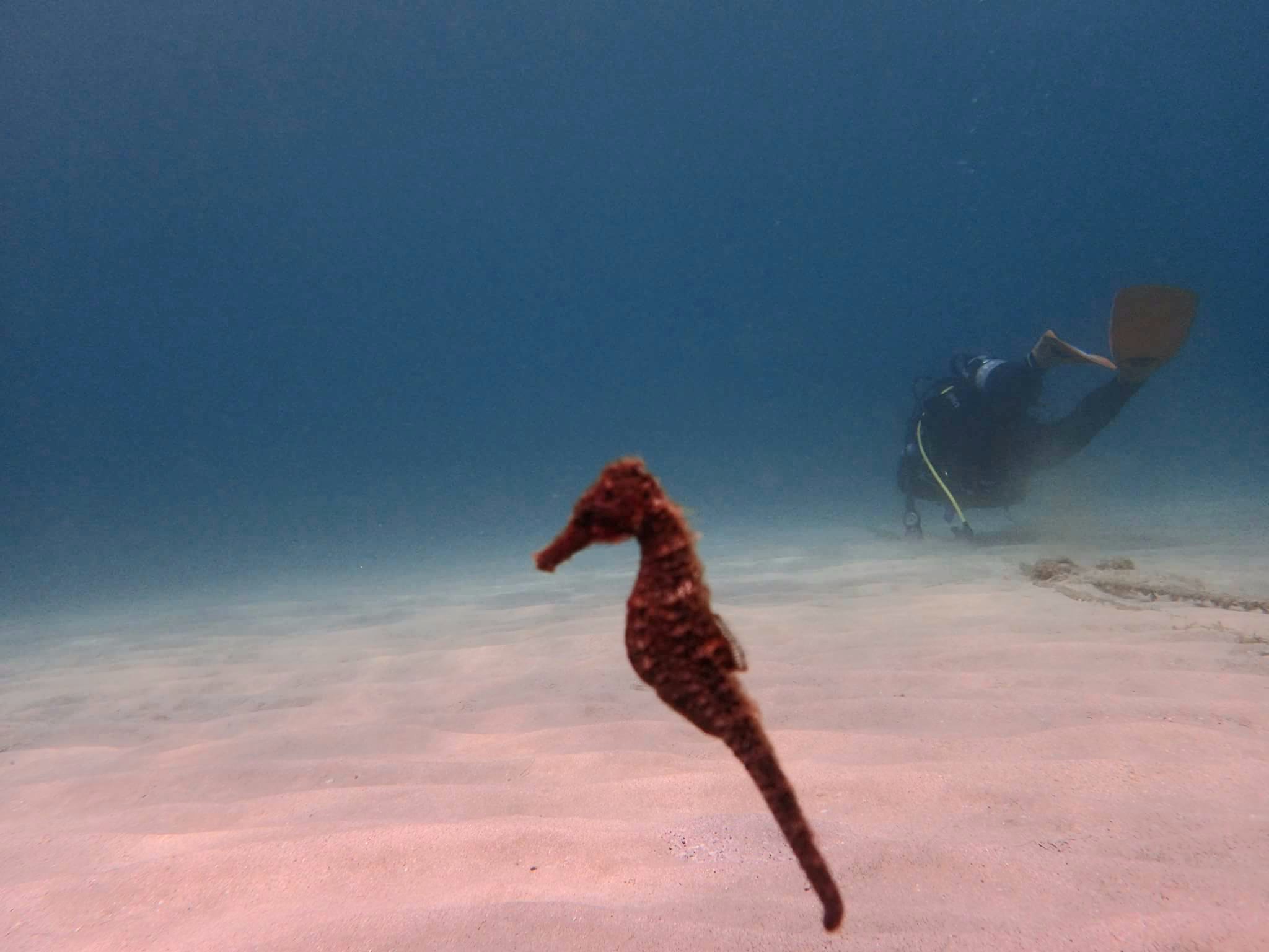 トッピー乗り場から海沿いを国上方面へ走ること約10分、ダイビングセンターの文字が目印です。